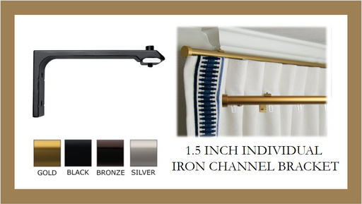 View full details1 1/8 Inch - Extended Channel Track Bracket - Available in Brushed Gold, Silver, and Black Finishes - IF&D Fabrics and Drapes