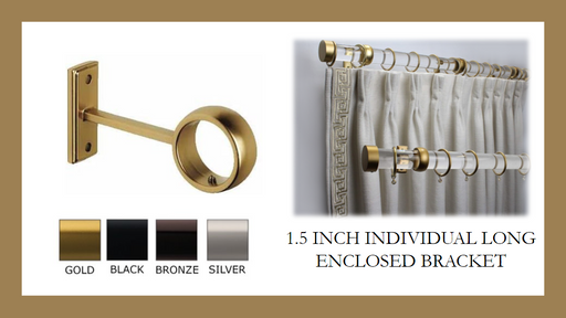 View full details1.5 Inch Diameter- Long Fully Enclosed Bracket- Available in Gold, Silver, Bronze and Black Finish - IF&D Fabrics and Drapes
