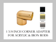 1 3/8 Inch - Corner/Elbow Adapter Hardware Piece - Available in Brushed Gold, Silver, and Black Finishes