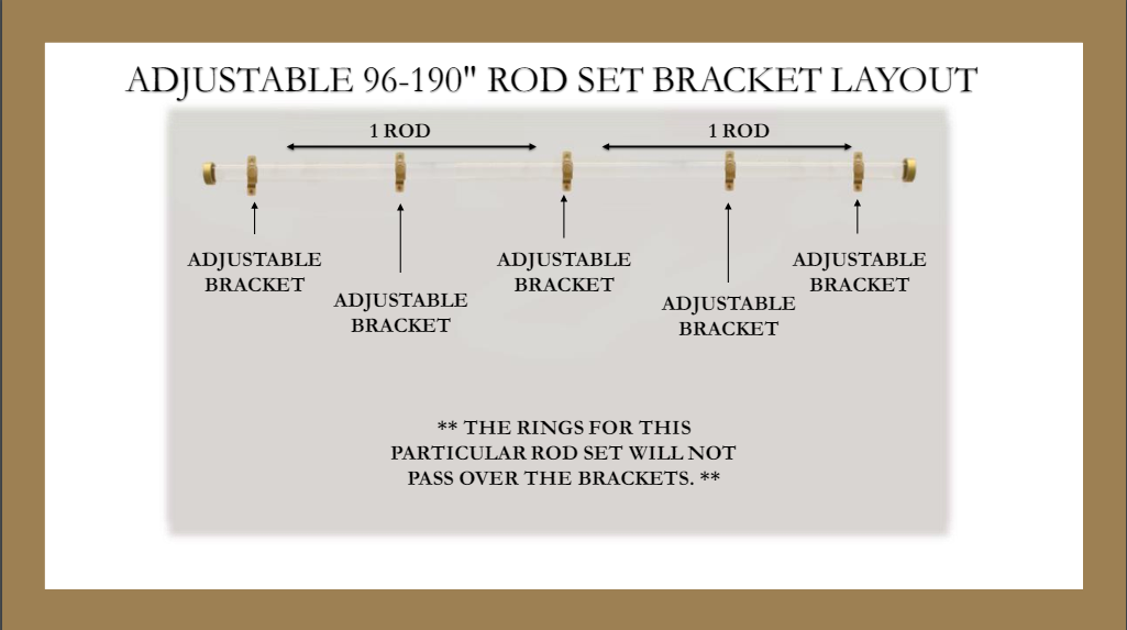 All necessary installation hardware, screws and instructions. This set is best to use with non-functional curtains because the rings will not pass by this particular bracket type. Note: We send multiple equal width rods for sets above 95 inches.